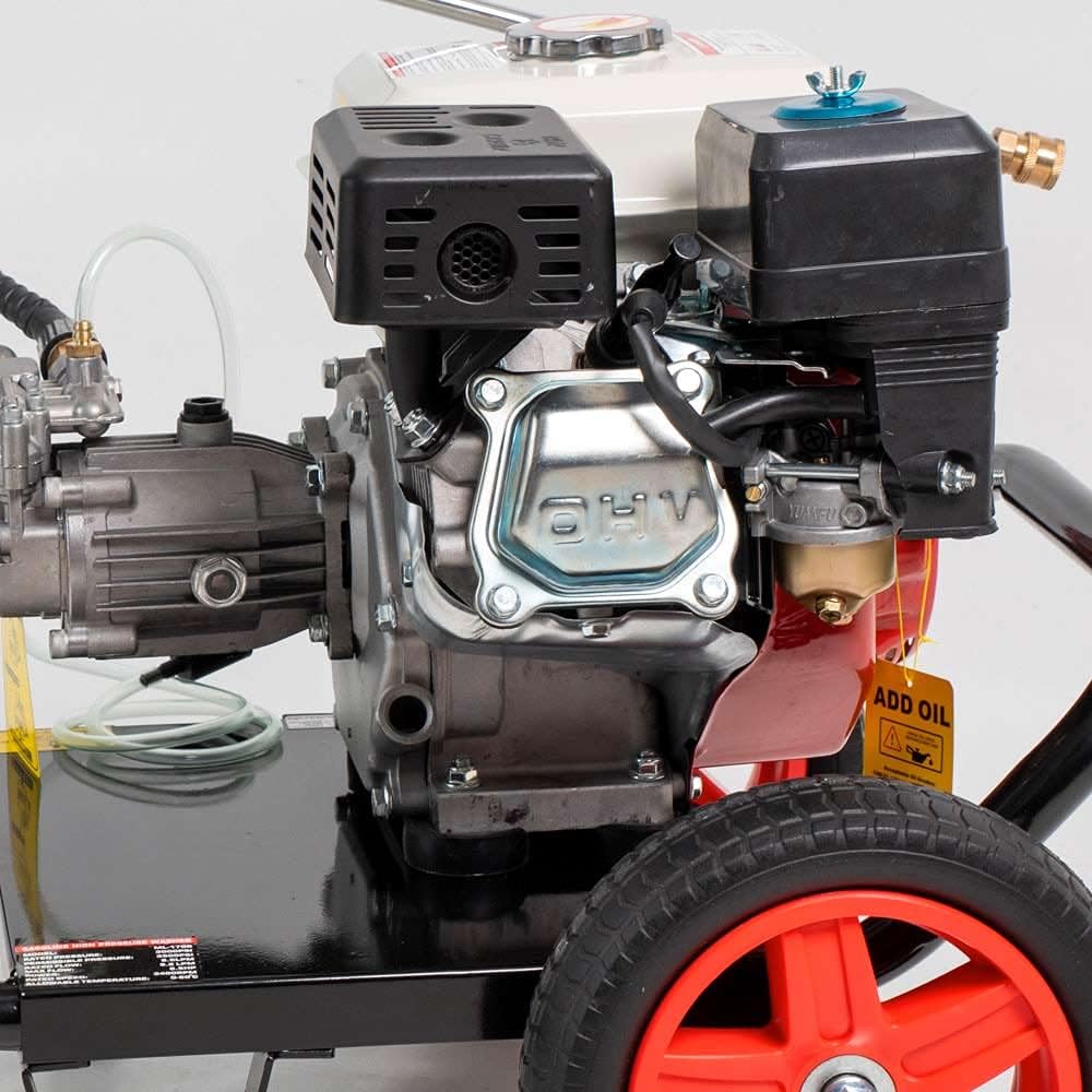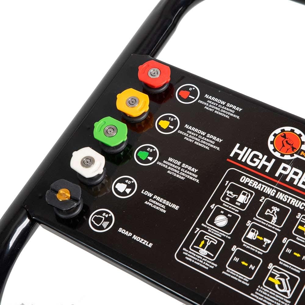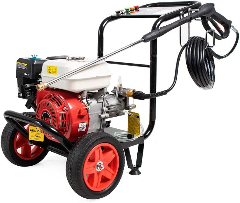 Idropulitrice a scoppio motore ohv a benzina da 6,59 Cv di potenza comprensivo di lancia a spruzzo e 5 ugelli di erogazione pressione 200 bar adatto per fai da te e professionisti